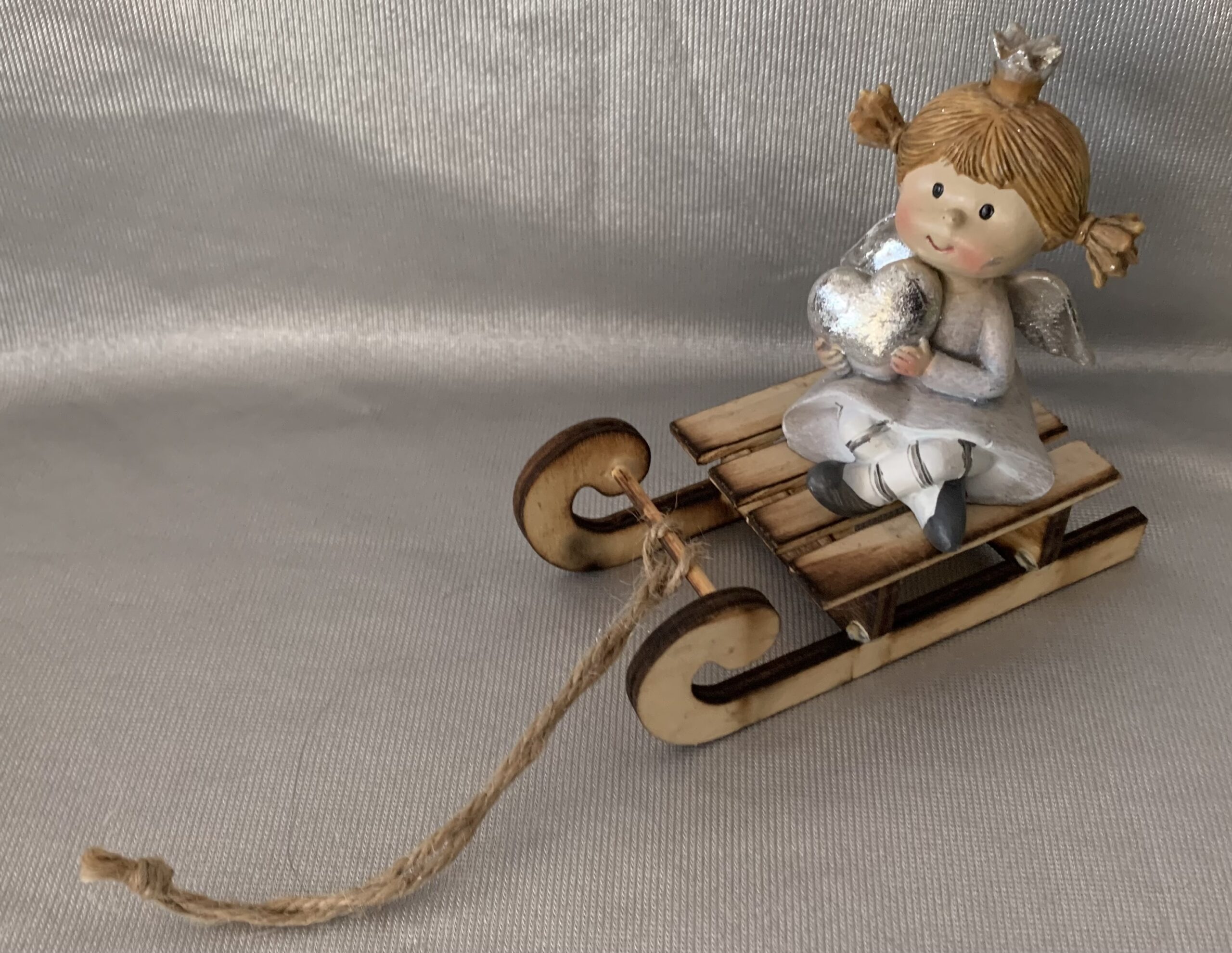 Deko Schlitten klein Hellbraun Engel Schneidersitz 41