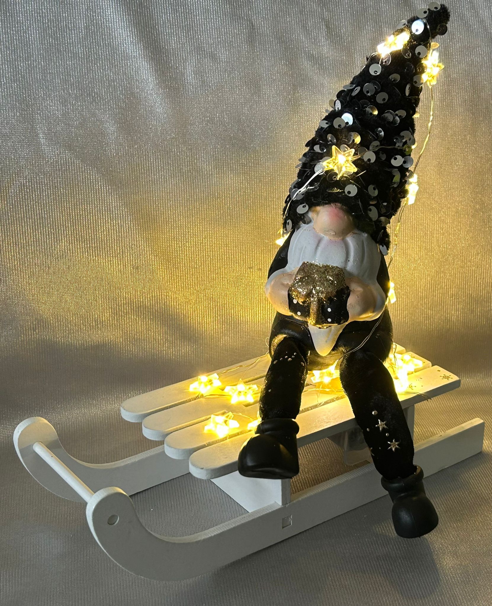Deko Schlitten Wichtel schwarz mit Glitzer (17)